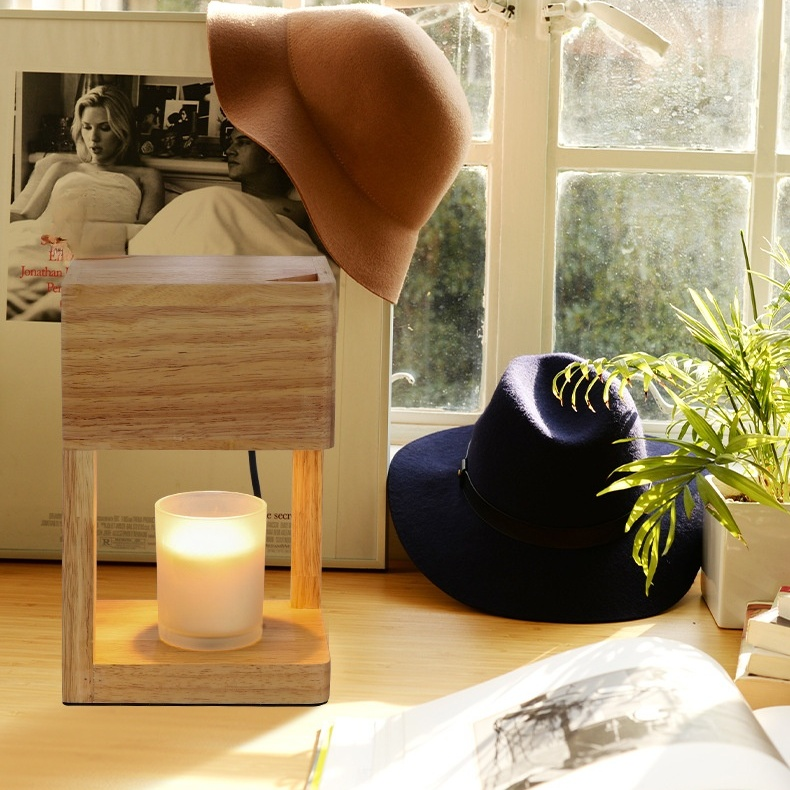 Einfache Aromatherapie-Lampe Wachslampe Duft ätherisches Öl Kerzenlampe Schlafzimmer Nachttisch Holz